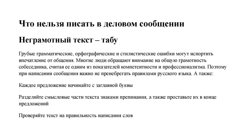 Что нельзя писать в деловом сообщенииНеграмотный текст – табу