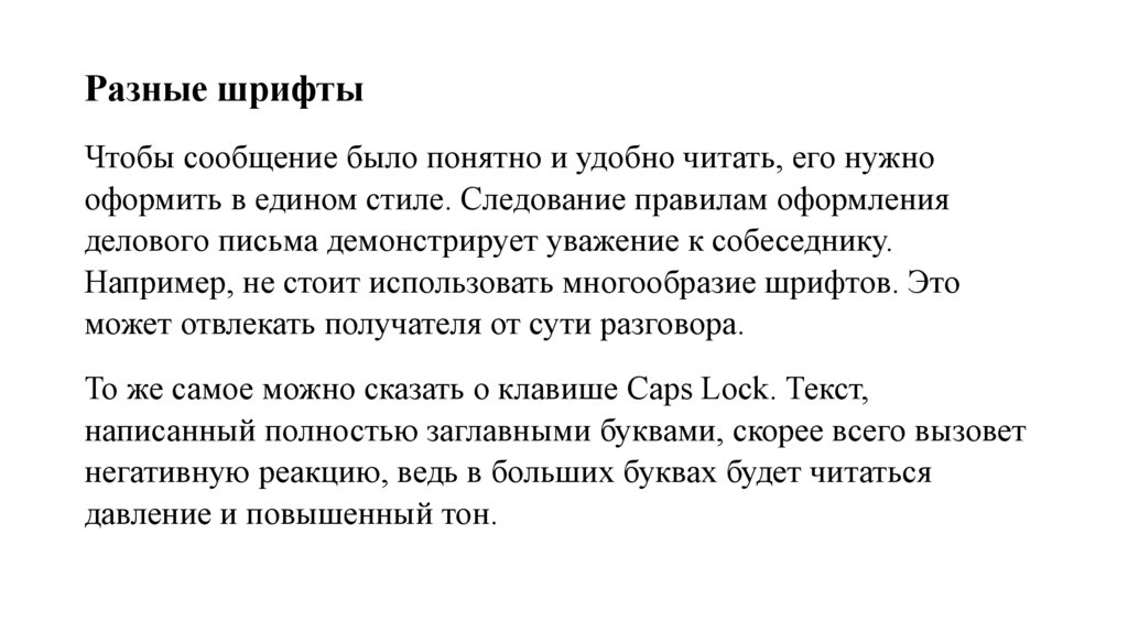 Разные шрифтыЧтобы сообщение было понятно и удобно читать, его нужно