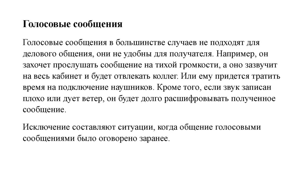 Голосовые сообщенияГолосовые сообщения в большинстве случаев не подходят для