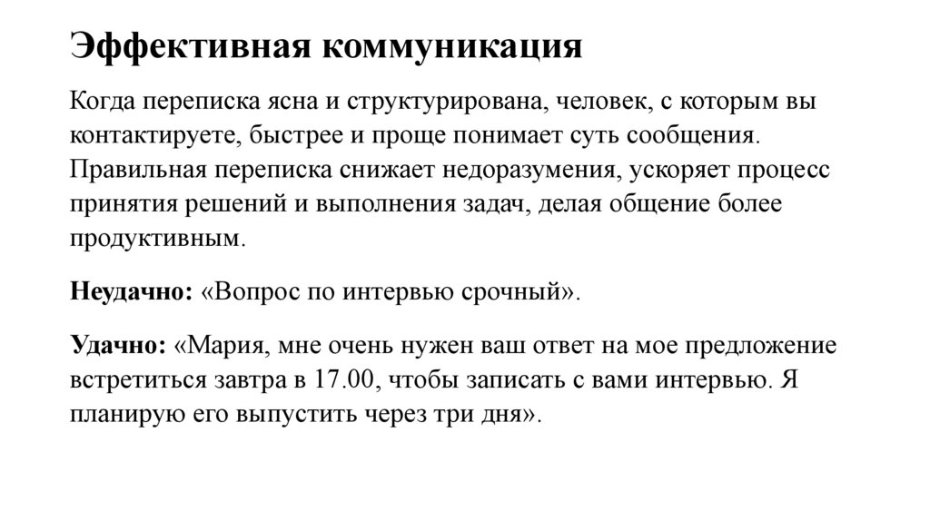 Правильная переписка снижает недоразумения, ускоряет процесс