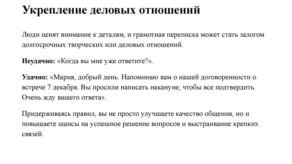 Люди ценят внимание к деталям, и грамотная переписка может стать залогомдолгосрочных творческих или деловых отношений.