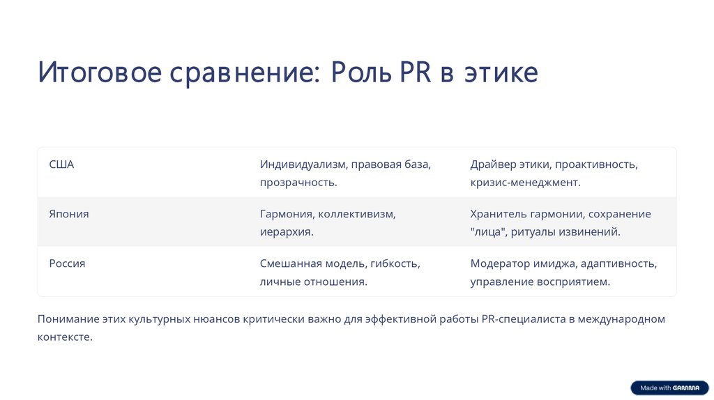 Понимание этих культурных нюансов критически важно для эффективной работы PR-специалиста в международном