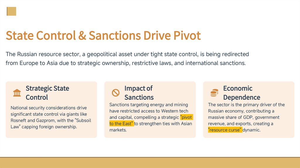 State Control & Sanctions Drive PivotThe Russian resource sector, a geopolitical asset under tight state control, is being redirected