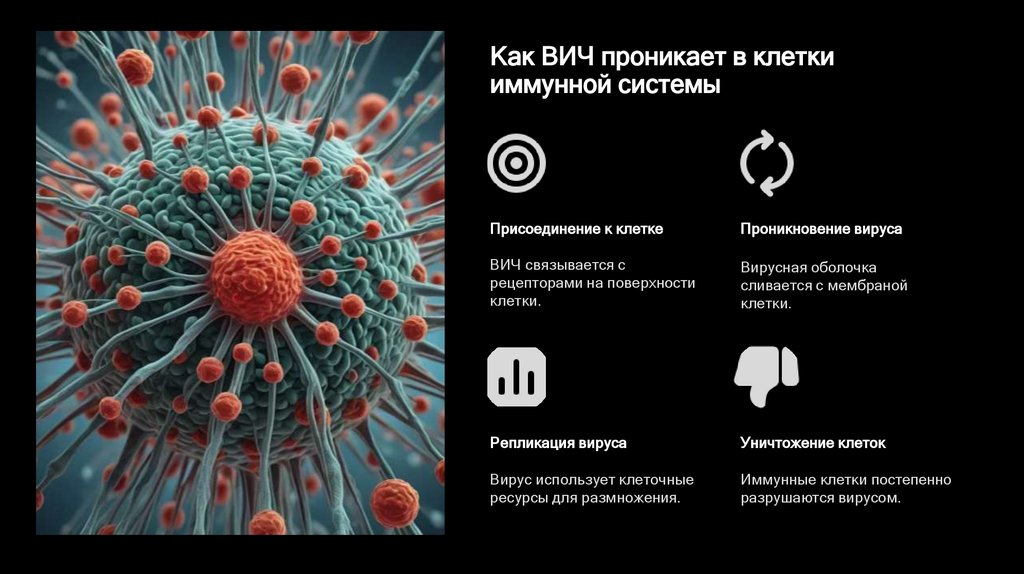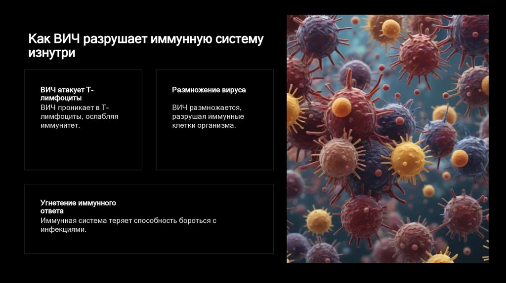 ВИЧ проникает в Tлимфоциты, ослабляя