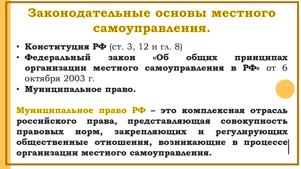 • Территорию, на которой гражданами организуется иосуществляется местное самоуправление, называют