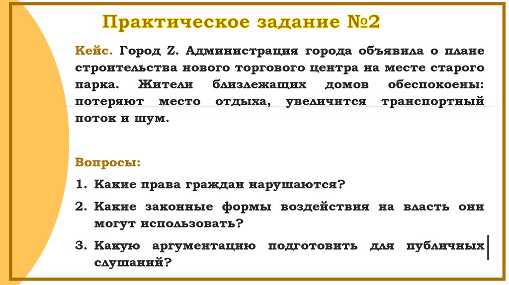 Кейс. Город Z. Администрация города объявила о планестроительства нового торгового центра на месте старого