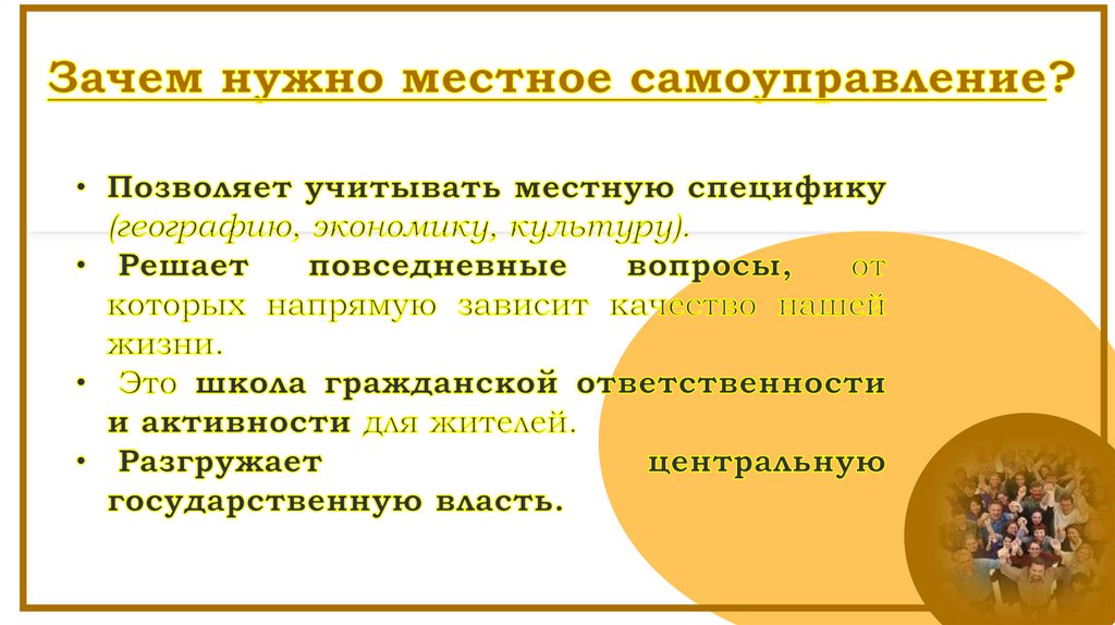 Местное самоуправление – это реальный уровень власти,где граждане могут напрямую влиять на свою жизнь.