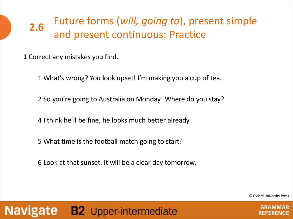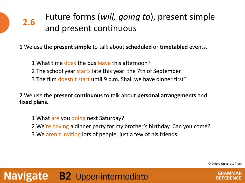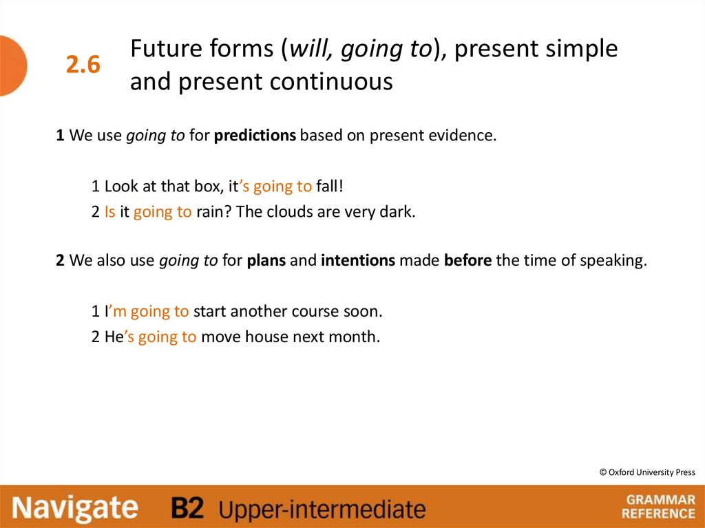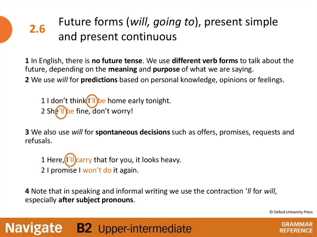 1 In English, there is no future tense. We use different verb forms to talk about the