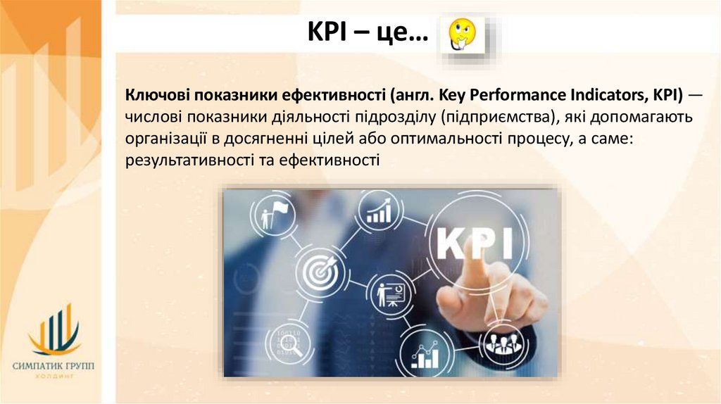 Ключові показники ефективності (англ. Key Performance Indicators, KPI) —числові показники діяльності підрозділу (підприємства), які допомагають