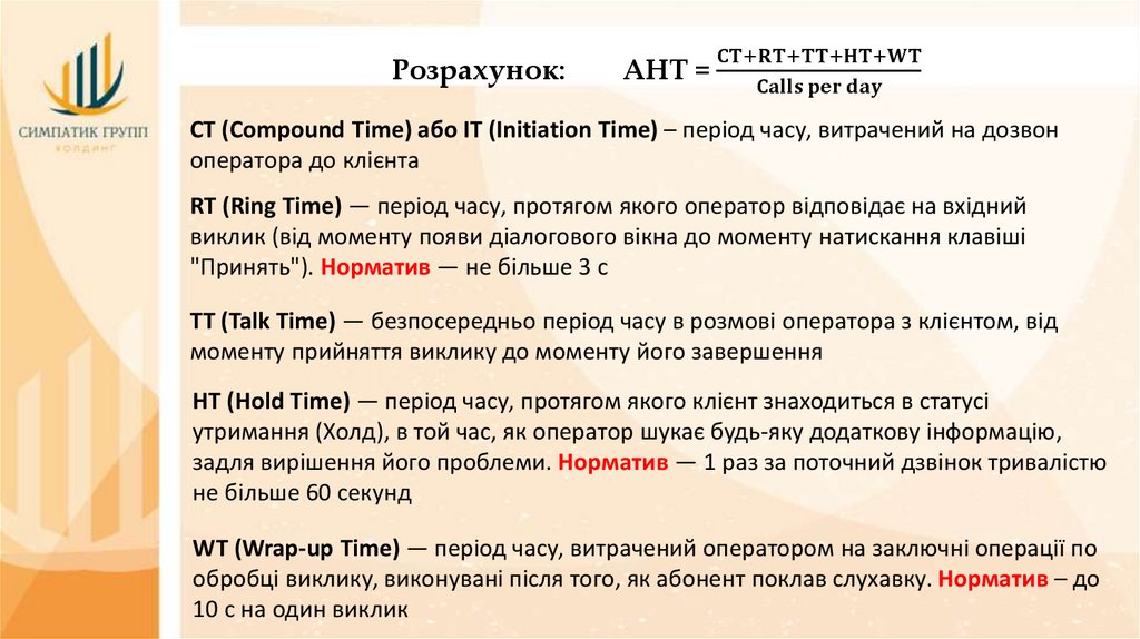словами, AHT — це середній час, який оператор витрачає на виконання