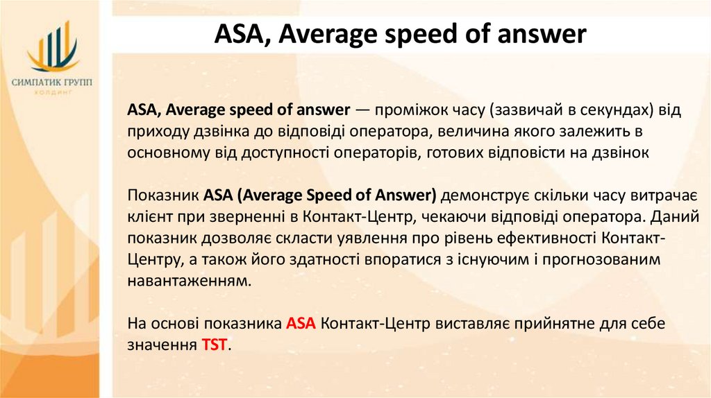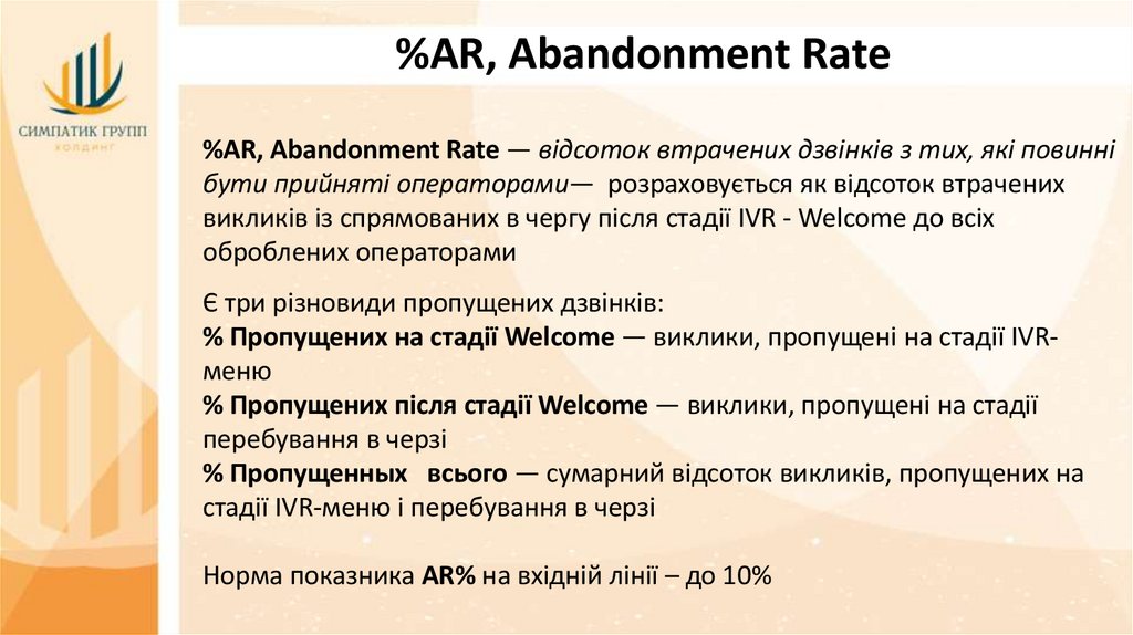 роботи Контакт-Центру. Ця метрика відображає усереднений час, який
