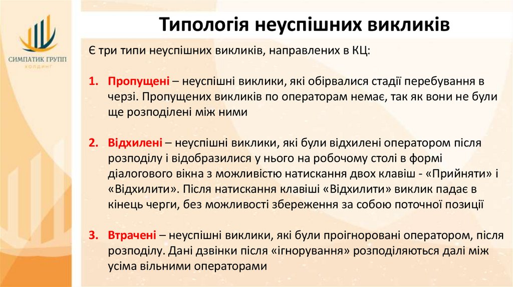 потрібен оператору на повний цикл обробки звернення клієнта. Іншими