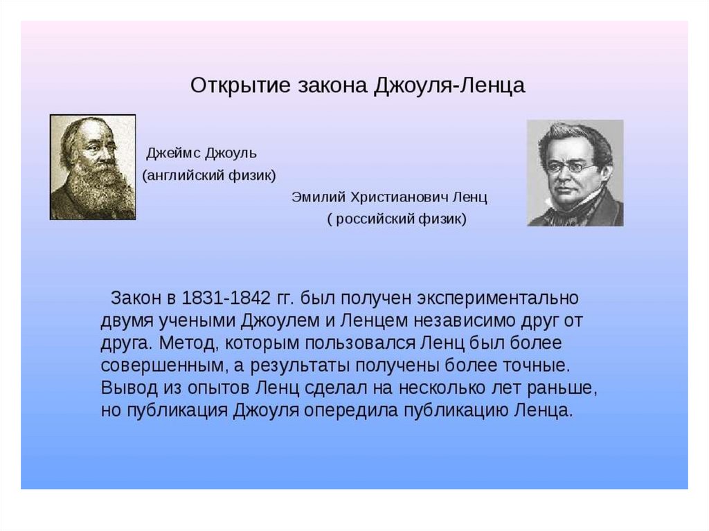 ЗАКОН ДЖОУЛЯ –ЛЕНЦА (1840 г.)Количество теплоты, выделяемое проводником