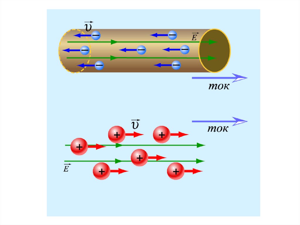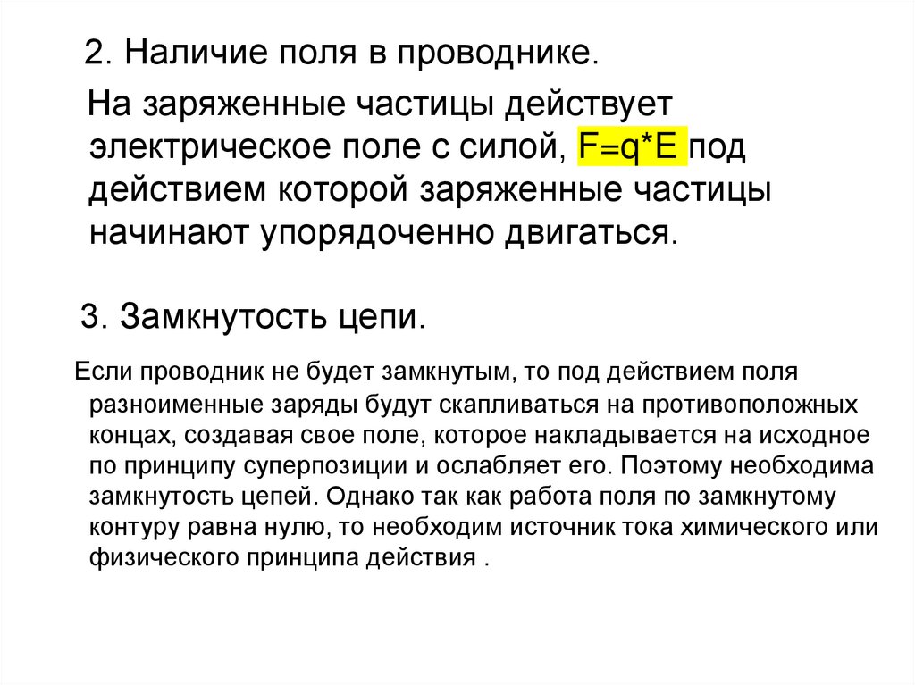 2. Наличие поля в проводнике.На заряженные частицы действует