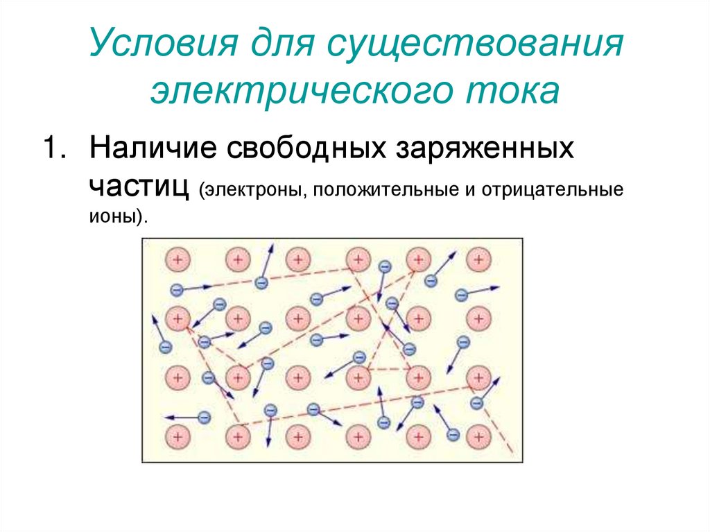 1. Наличие свободных заряженныхчастиц (электроны, положительные и отрицательные