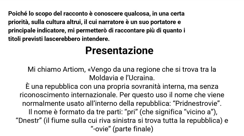 Poiché lo scopo del racconto è conoscere qualcosa, in una certapriorità, sulla cultura altrui, il cui narratore è un suo portatore e