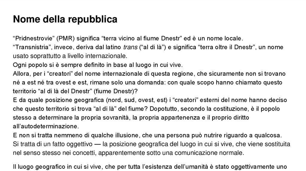 storica e politica della Transnistria, che purtroppo si distingue nettamente dalla