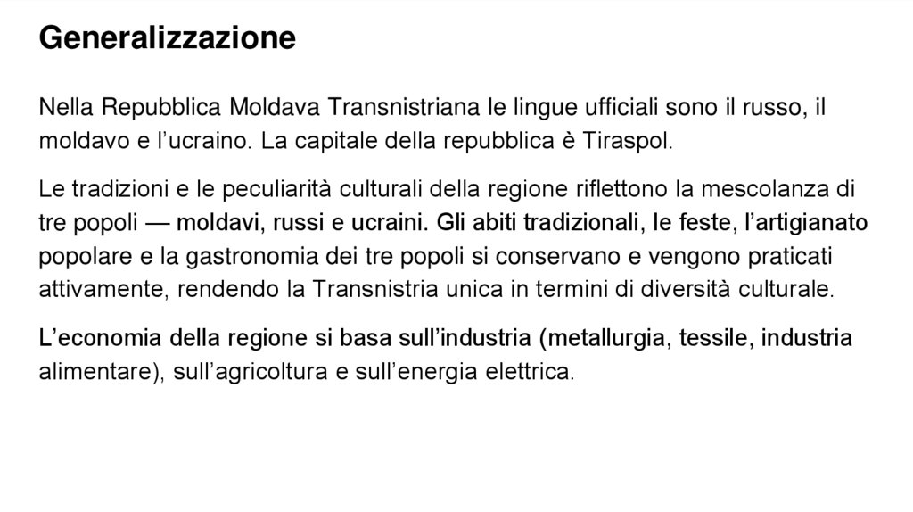 GeneralizzazioneNella Repubblica Moldava Transnistriana le lingue ufficiali sono il russo, il