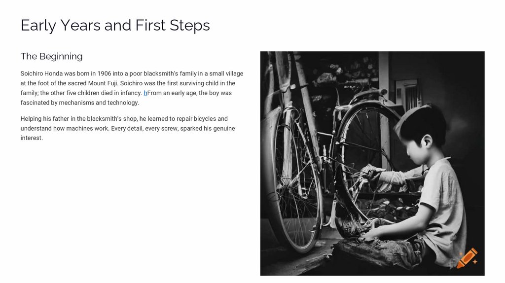 Soichiro Honda was born in 1906 into a poor blacksmith's family in a small village