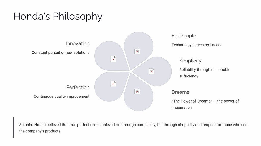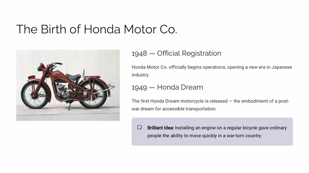 Soichiro Honda believed that true perfection is achieved not through complexity, but through simplicity and respect for those who use