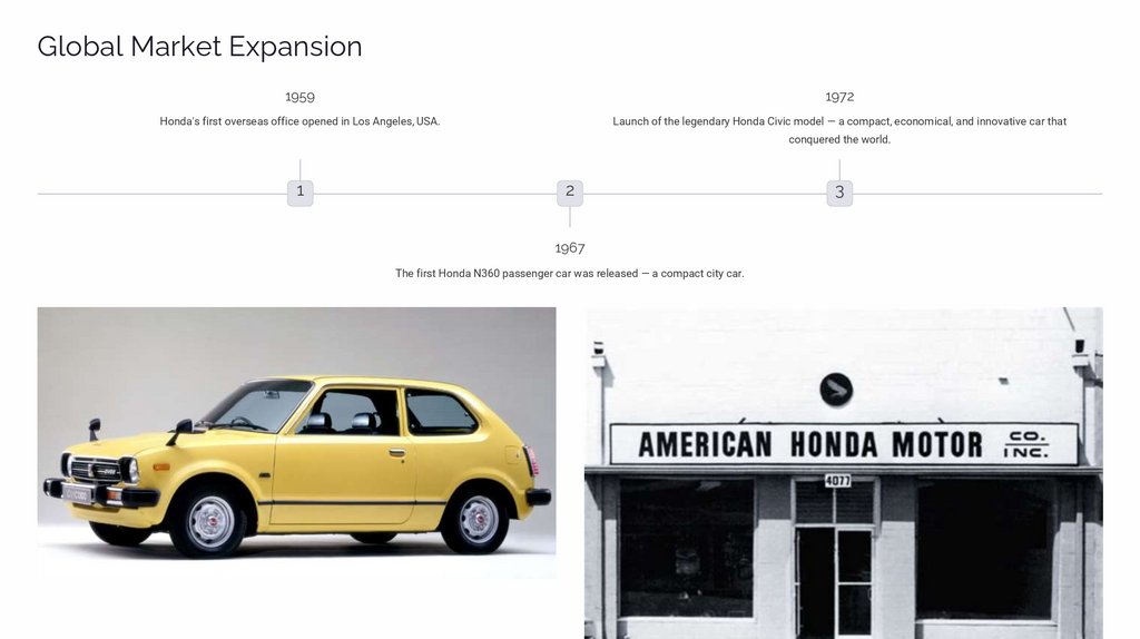 Launch of the legendary Honda Civic model — a compact, economical, and innovative car that