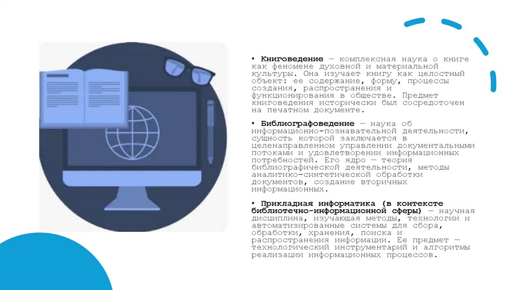 • Книговедение — комплексная наука о книгекак феномене духовной и материальной