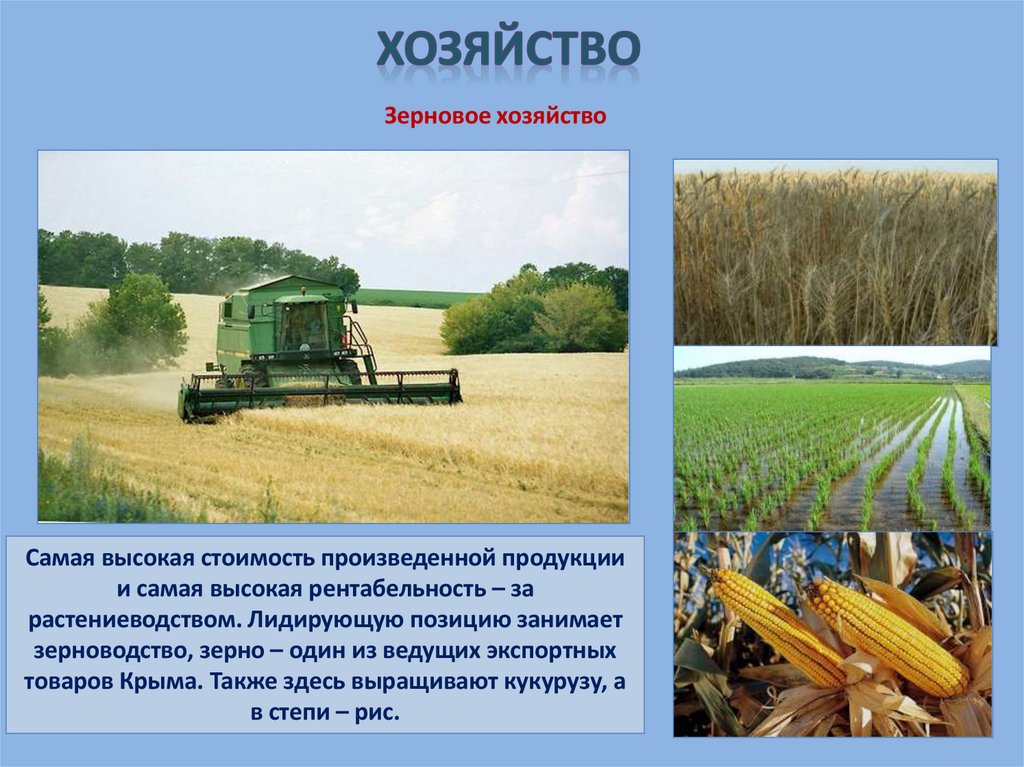 Зерновое хозяйствоСамая высокая стоимость произведенной продукции