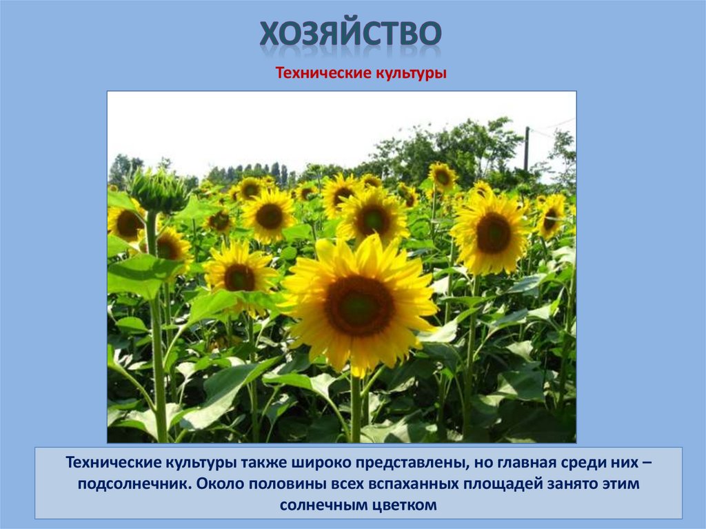 Технические культурыТехнические культуры также широко представлены, но главная среди них –