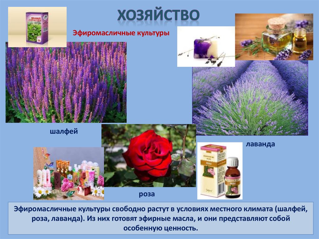 Эфиромасличные культуры свободно растут в условиях местного климата (шалфей,