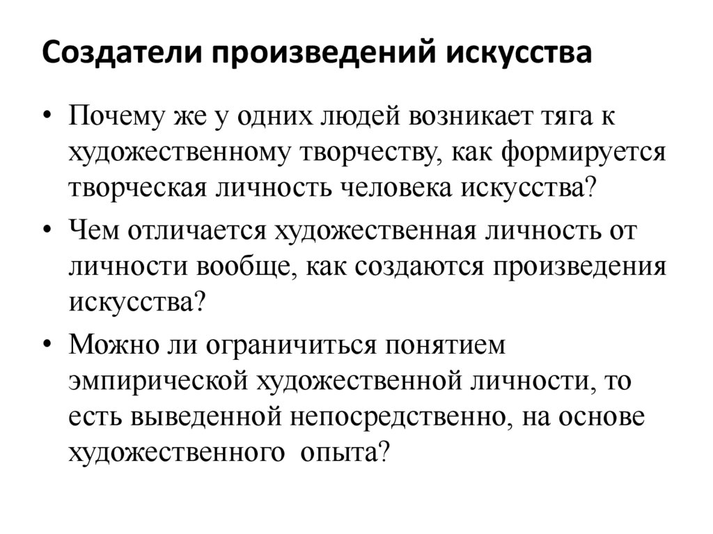 • Почему же у одних людей возникает тяга кхудожественному творчеству, как формируется