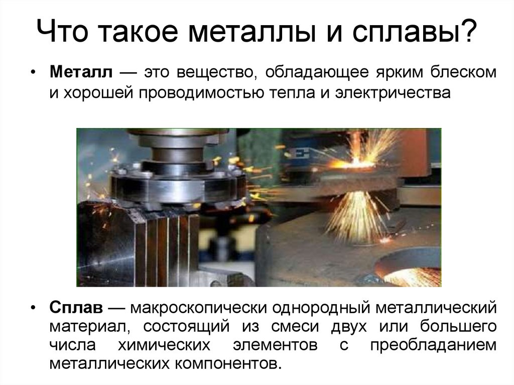 • Металл — это вещество, обладающее ярким блескоми хорошей проводимостью тепла и электричества