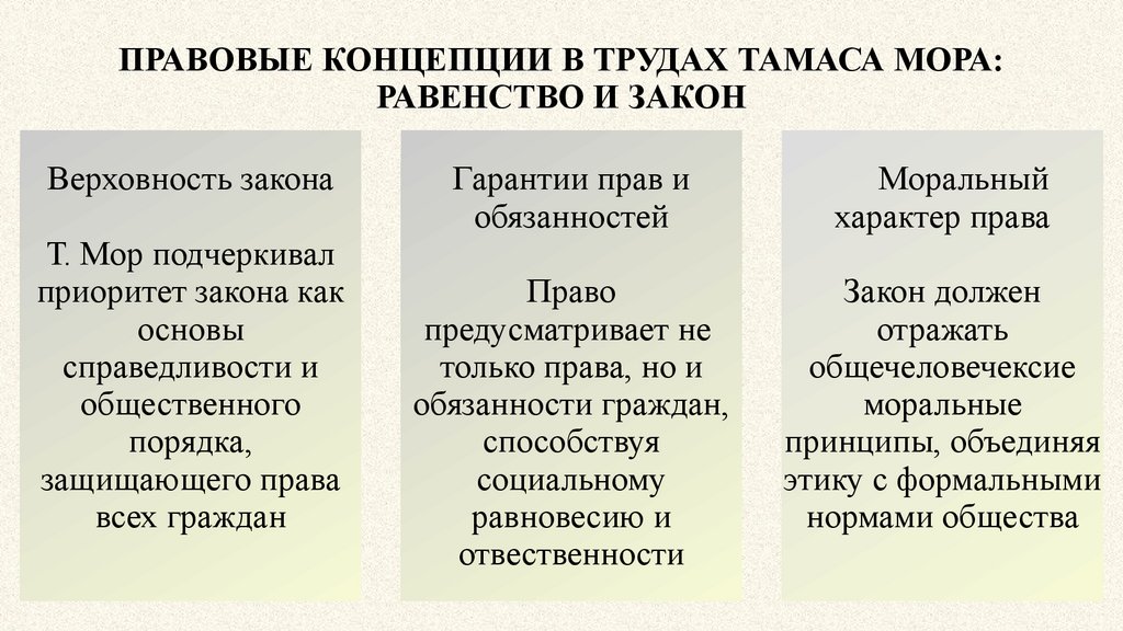 ПРАВОВЫЕ КОНЦЕПЦИИ В ТРУДАХ ТАМАСА МОРА:РАВЕНСТВО И ЗАКОН