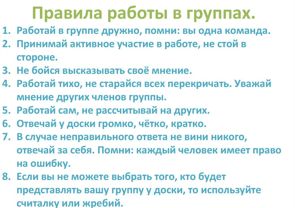 Правила работы в группах.1. Работай в группе дружно, помни: вы одна команда.