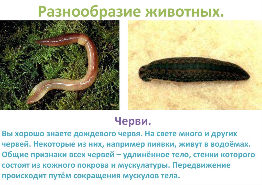 червей. Некоторые из них, например пиявки, живут в водоёмах.