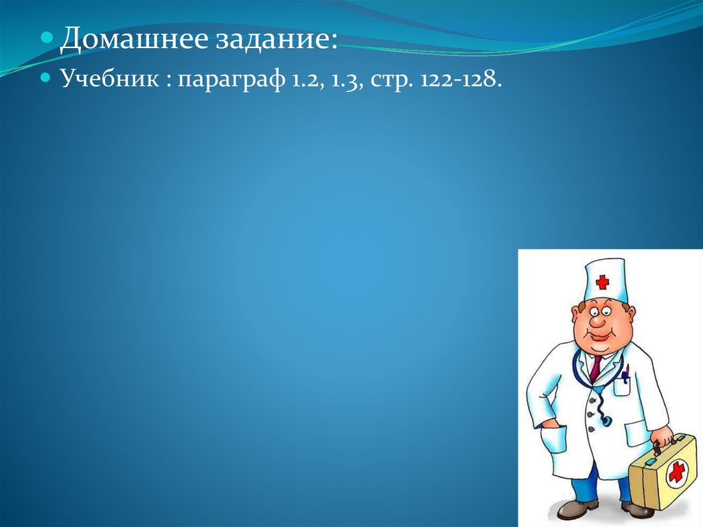 Домашнее задание:Учебник : параграф 1.2, 1.3, стр. 122-128.