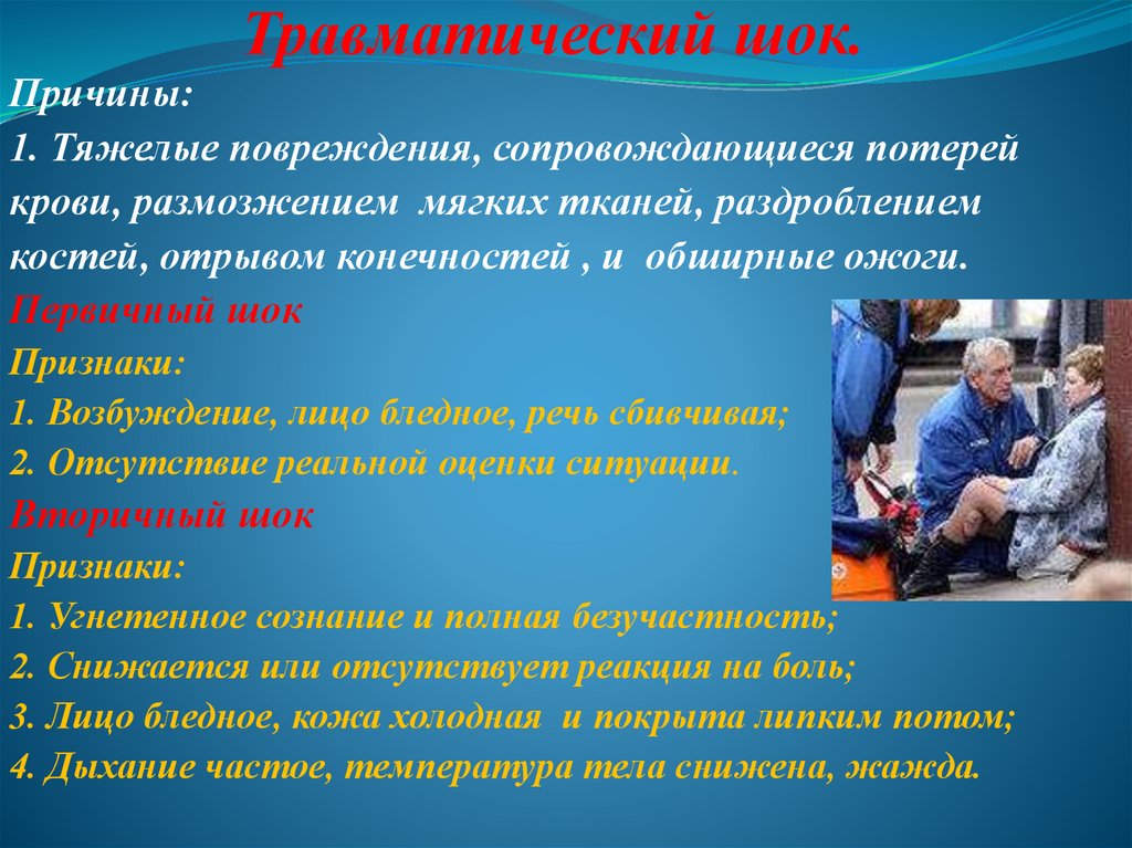 Причины:1. Тяжелые повреждения, сопровождающиеся потерей