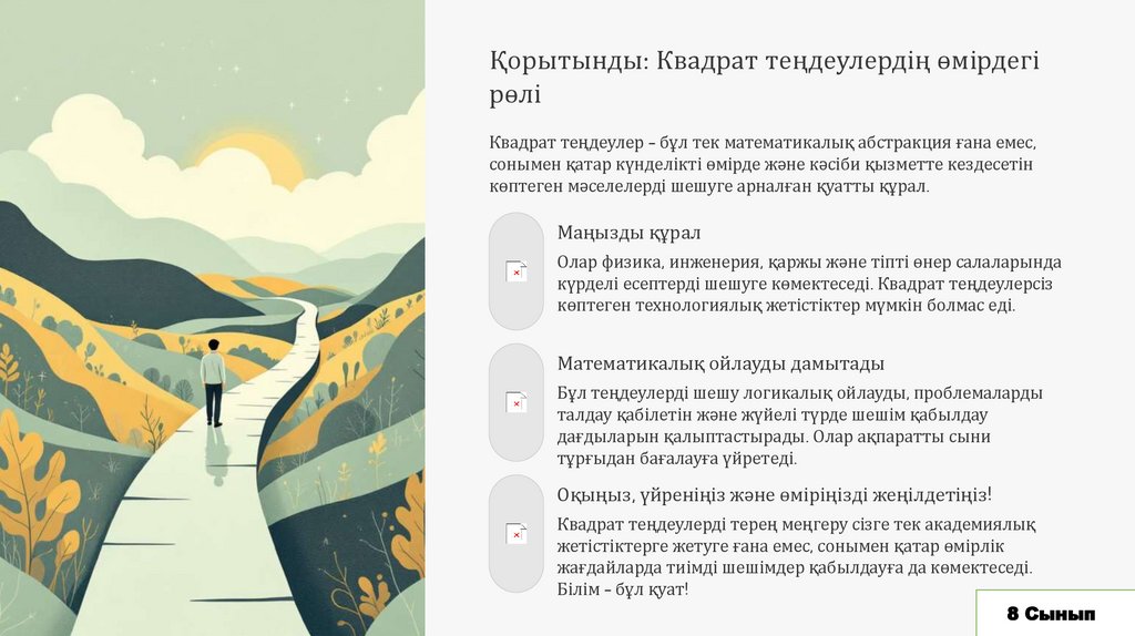 Қорытынды: Квадрат теңдеулердің өмірдегірөлі
