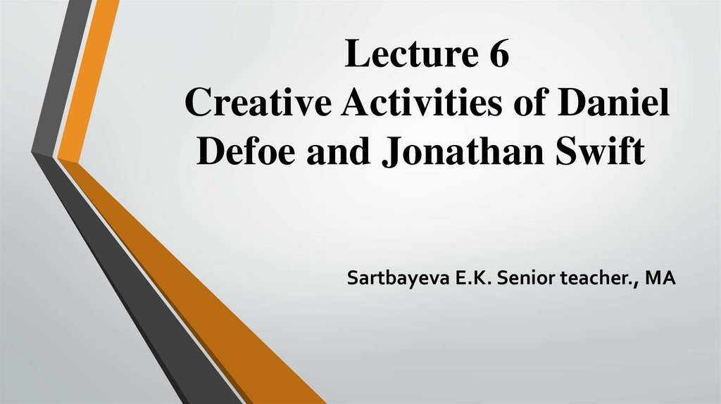 1. Lecture 6 Creative Activities of Daniel Defoe and Jonathan Swift