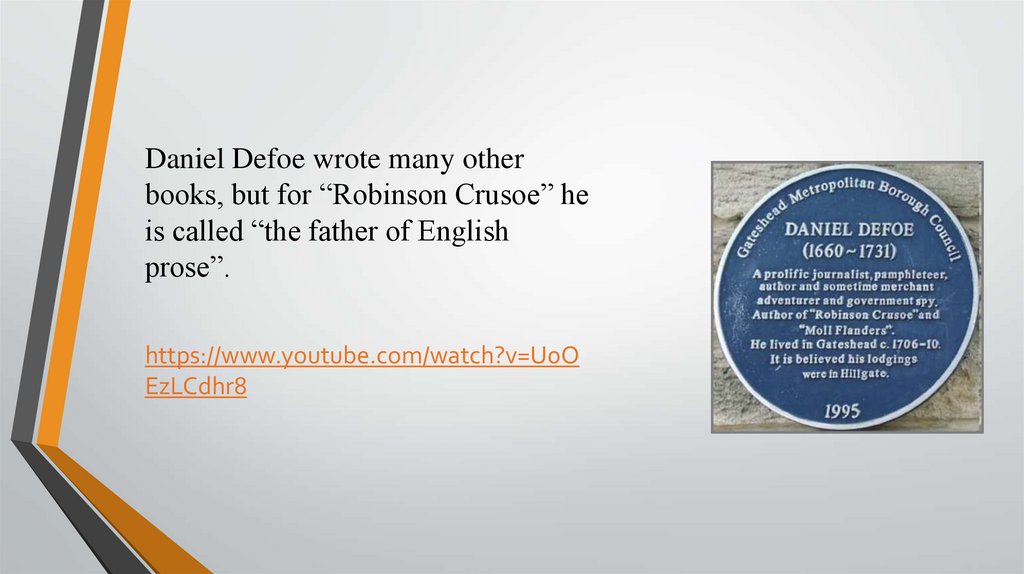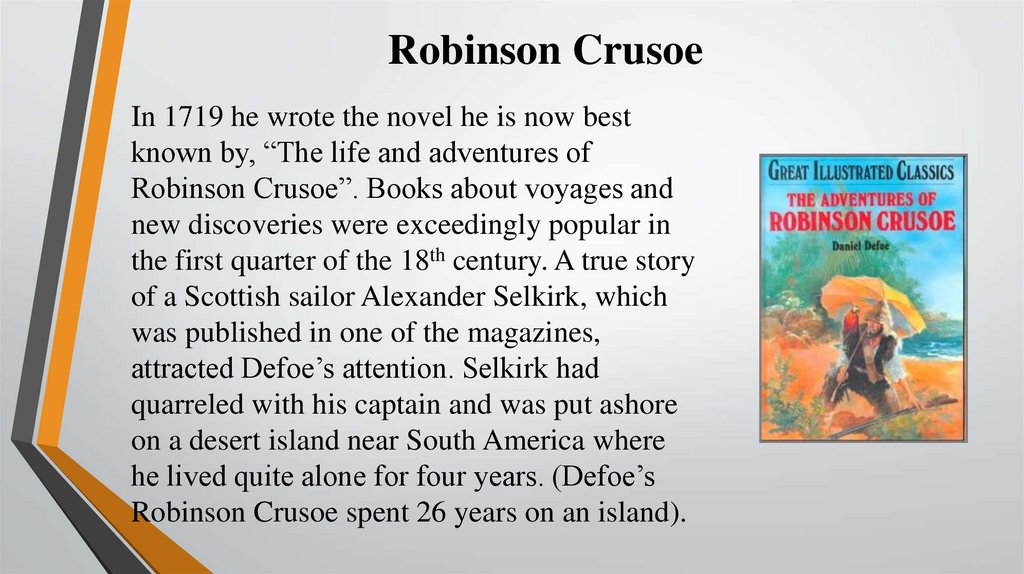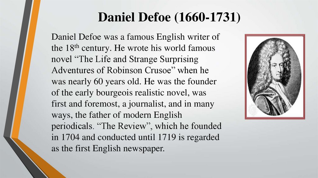 Daniel Defoe was a famous English writer ofthe 18th century. He wrote his world famous