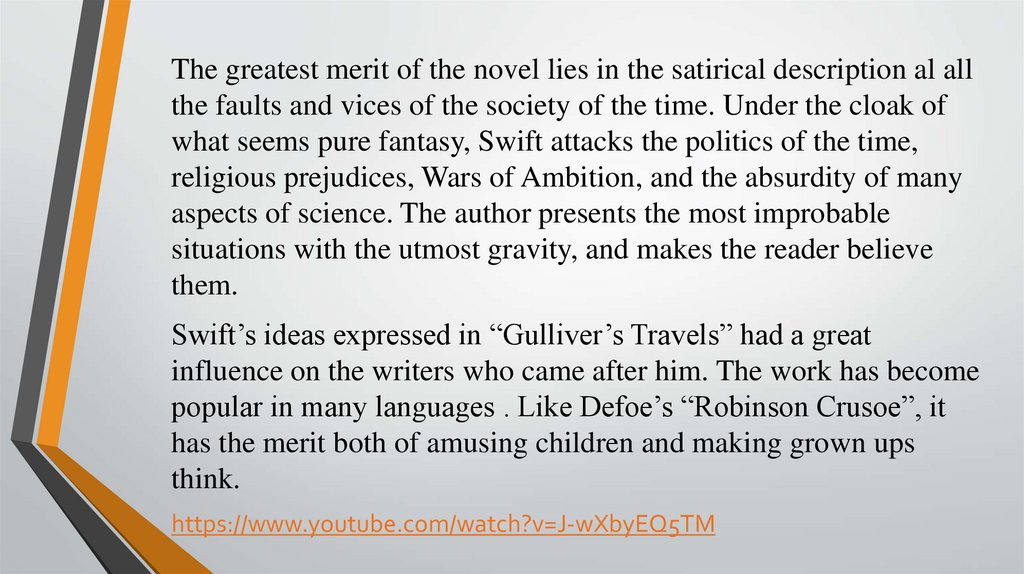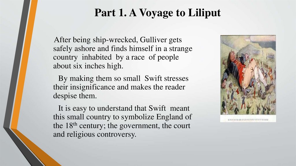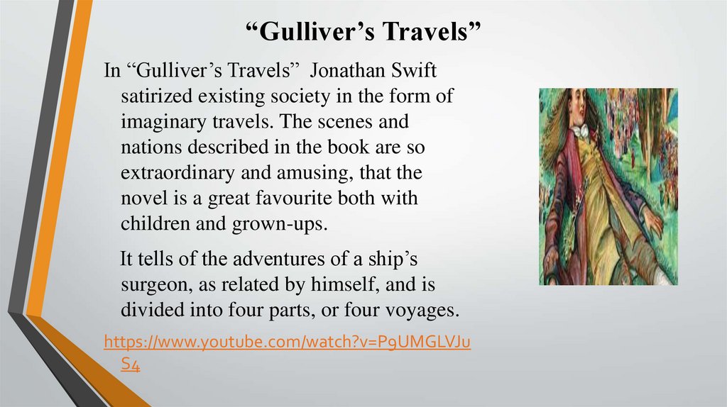 - Analysis of the novel “Gulliver’s Travels”: plot, satirical