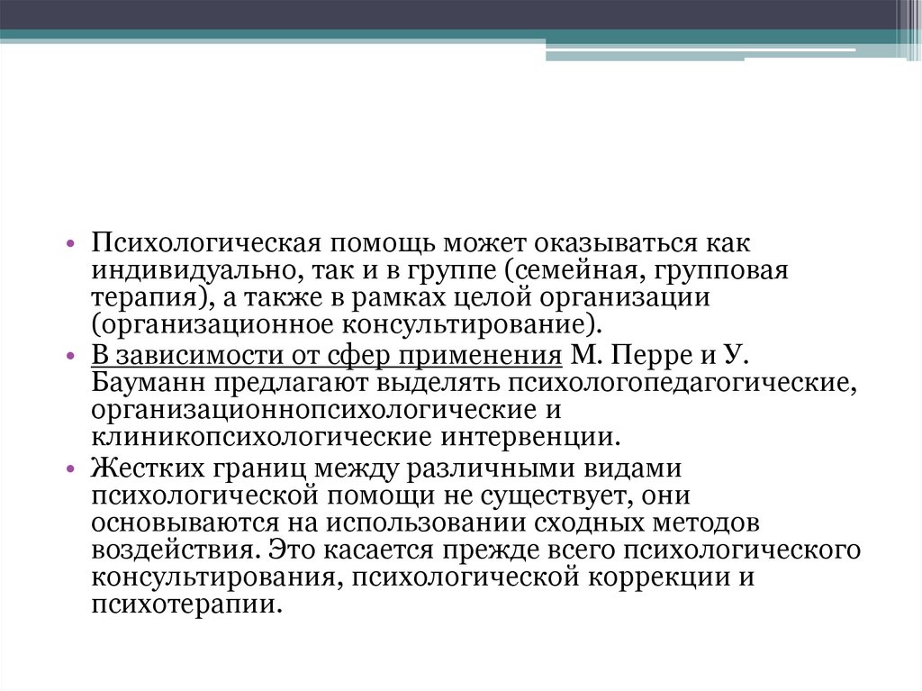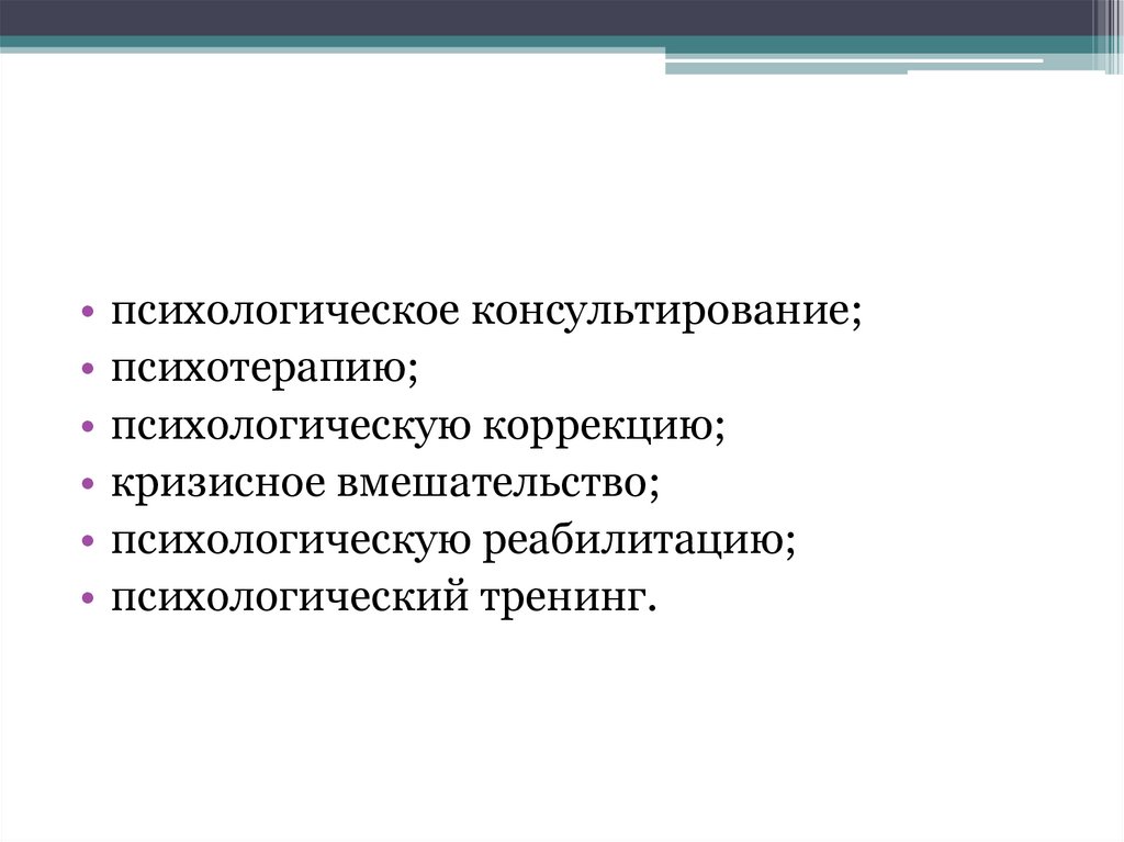 Выделяют различные виды психологическойпомощи, которые различаются целями,