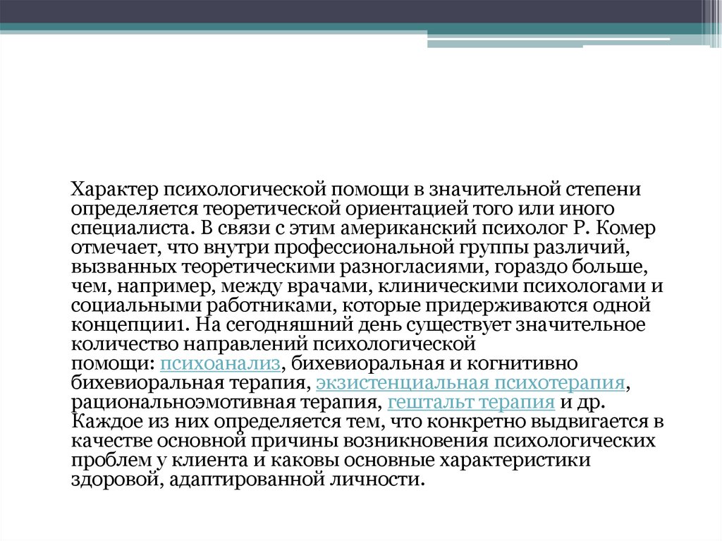 Характер психологической помощи в значительной степениопределяется теоретической ориентацией того или иного