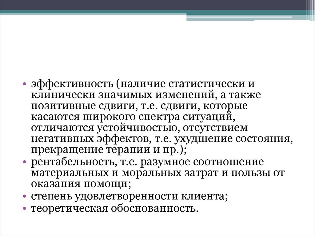 • эффективность (наличие статистически иклинически значимых изменений, а также
