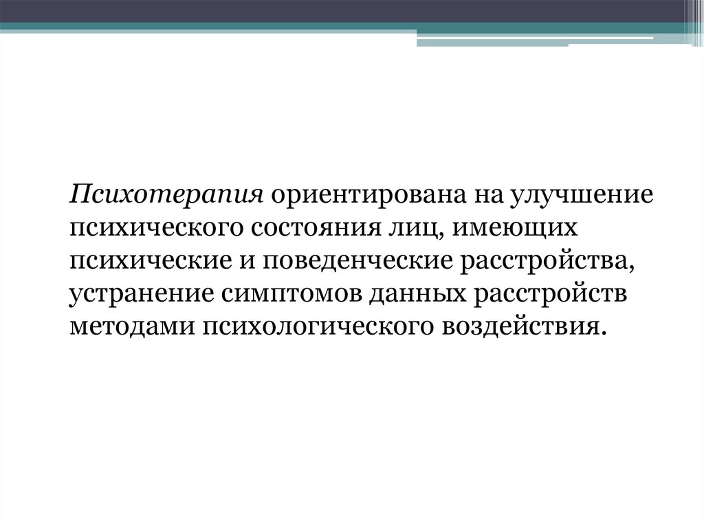 Психотерапия ориентирована на улучшениепсихического состояния лиц, имеющих