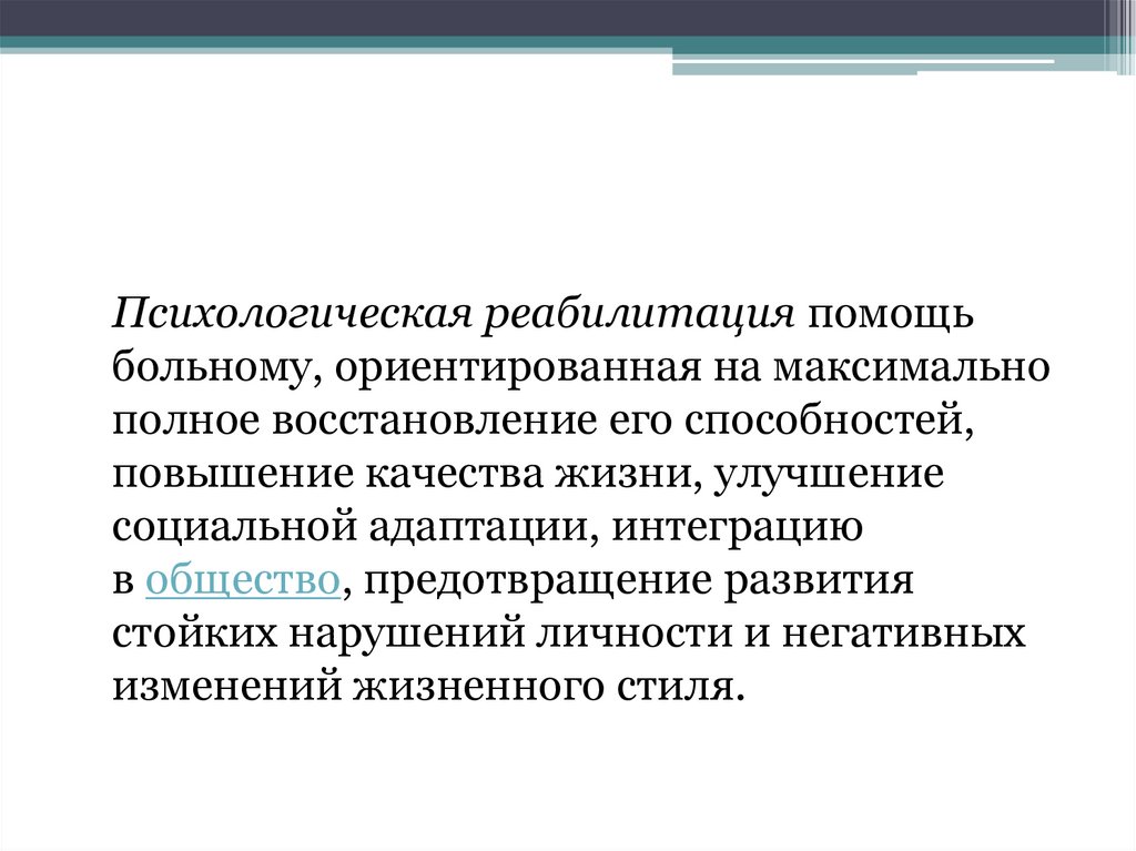 Психологическая реабилитация помощьбольному, ориентированная на максимально