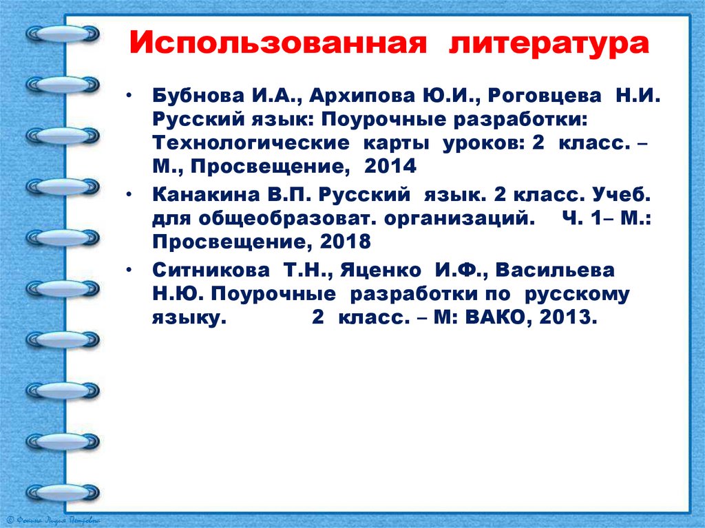 • Бубнова И.А., Архипова Ю.И., Роговцева Н.И.Русский язык: Поурочные разработки: