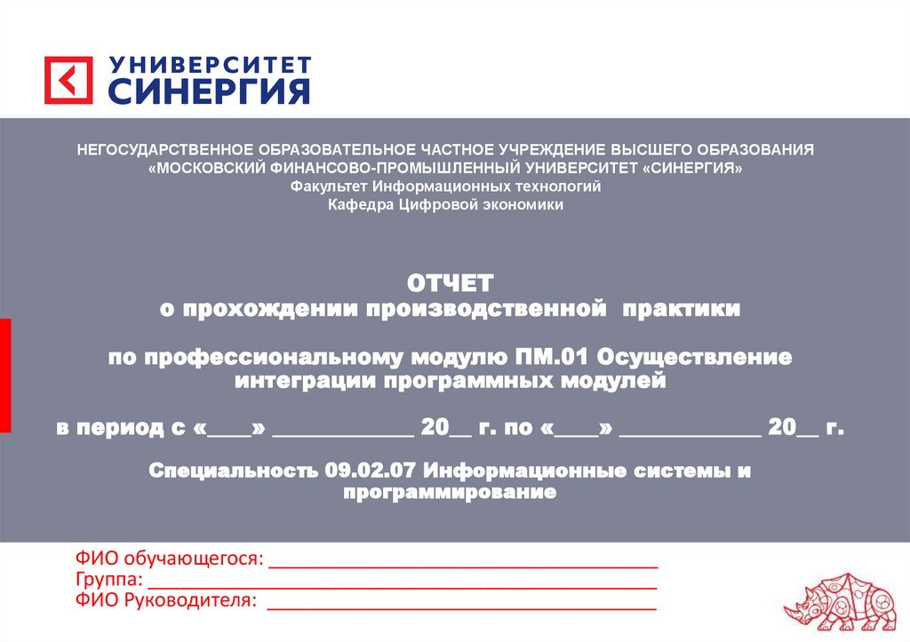 1. ОТЧЕТ о прохождении производственной практики по профессиональному модулю ПМ.01 Осуществление интеграции программных модулей в