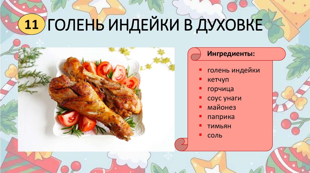 11 ГОЛЕНЬ ИНДЕЙКИ В ДУХОВКЕИнгредиенты: