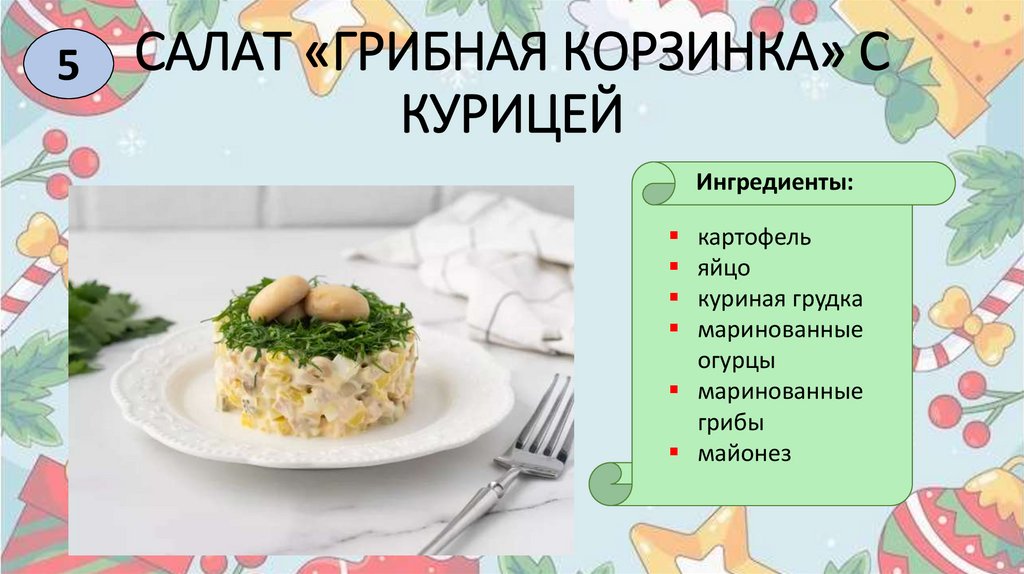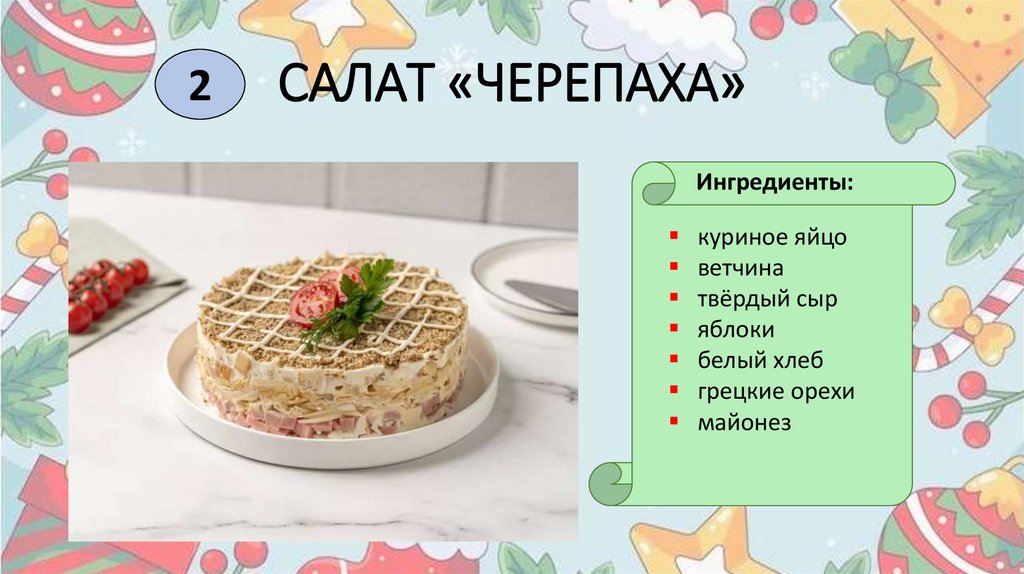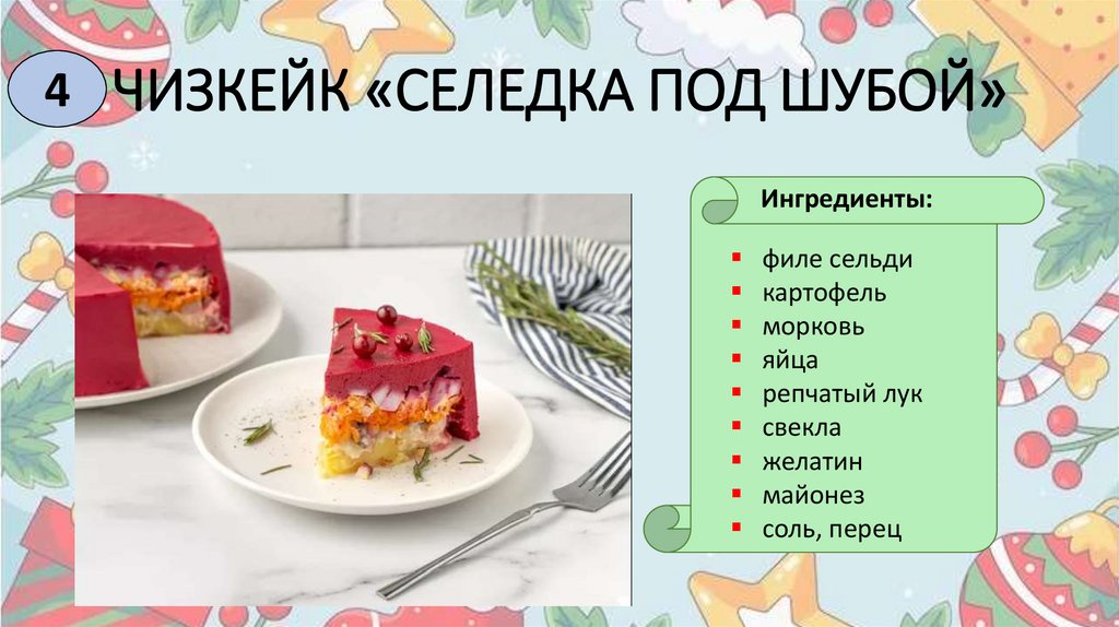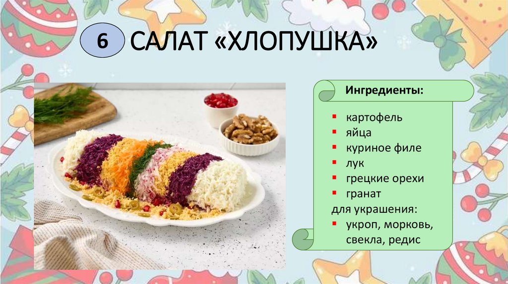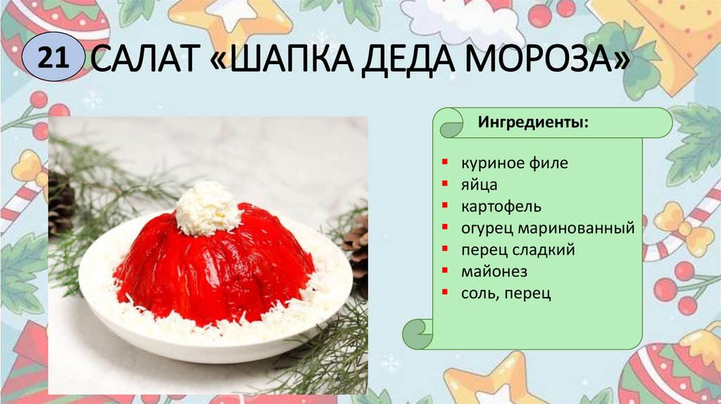 21 САЛАТ «ШАПКА ДЕДА МОРОЗА»Ингредиенты: