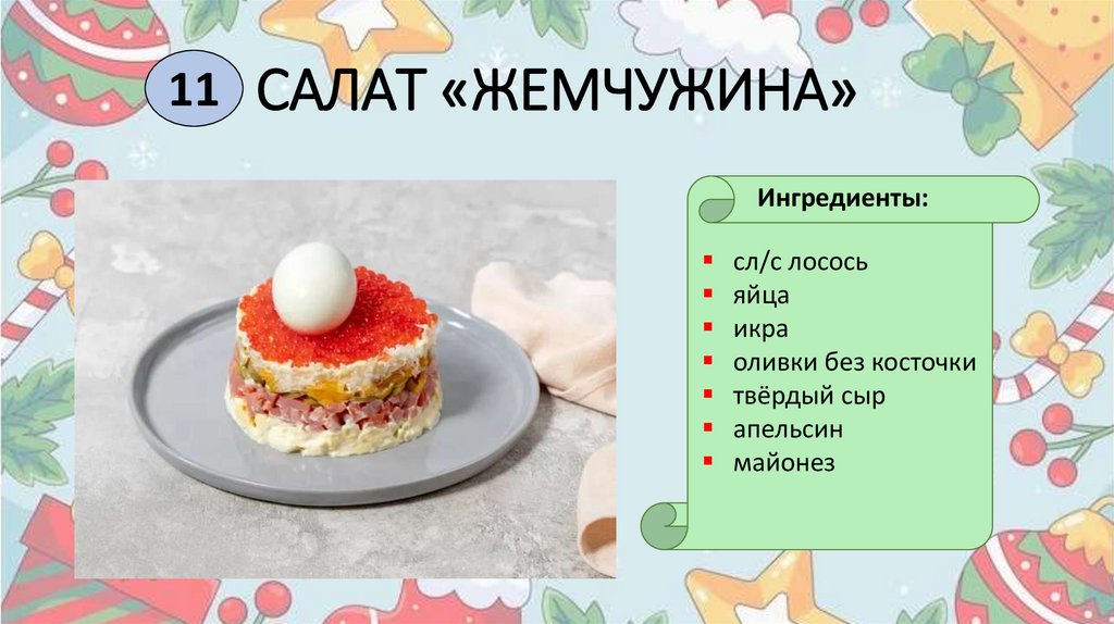 11 САЛАТ «ЖЕМЧУЖИНА»Ингредиенты: